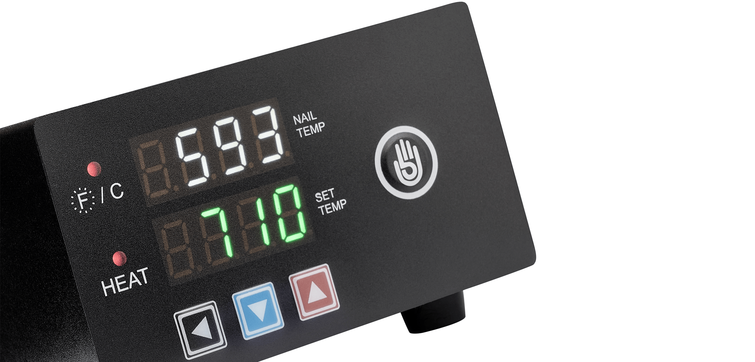 Powered by an advanced microprocessor for real time temperature reading and temperature stabilization unlike PIDs used by other E-Nails on the market. The most advanced desktop E-Nail on the market that allows you to fully take control of your session. Set your controller to the exact coil size you're using for optimum temperature control and performance. The Micro E-Nail has a rapid heat up time which only takes 90-120 seconds. Customizable displayed temperature in Celsius and Fahrenheit. Set and forget, this unit features a timer/auto shut off to ensure that your unit turns off when you want and you'll never have to worry about turning it off. Cleaning is a breeze with the Micro E-Nail, utilize the unit's self cleaning mode for built up residue and easy maintenance.