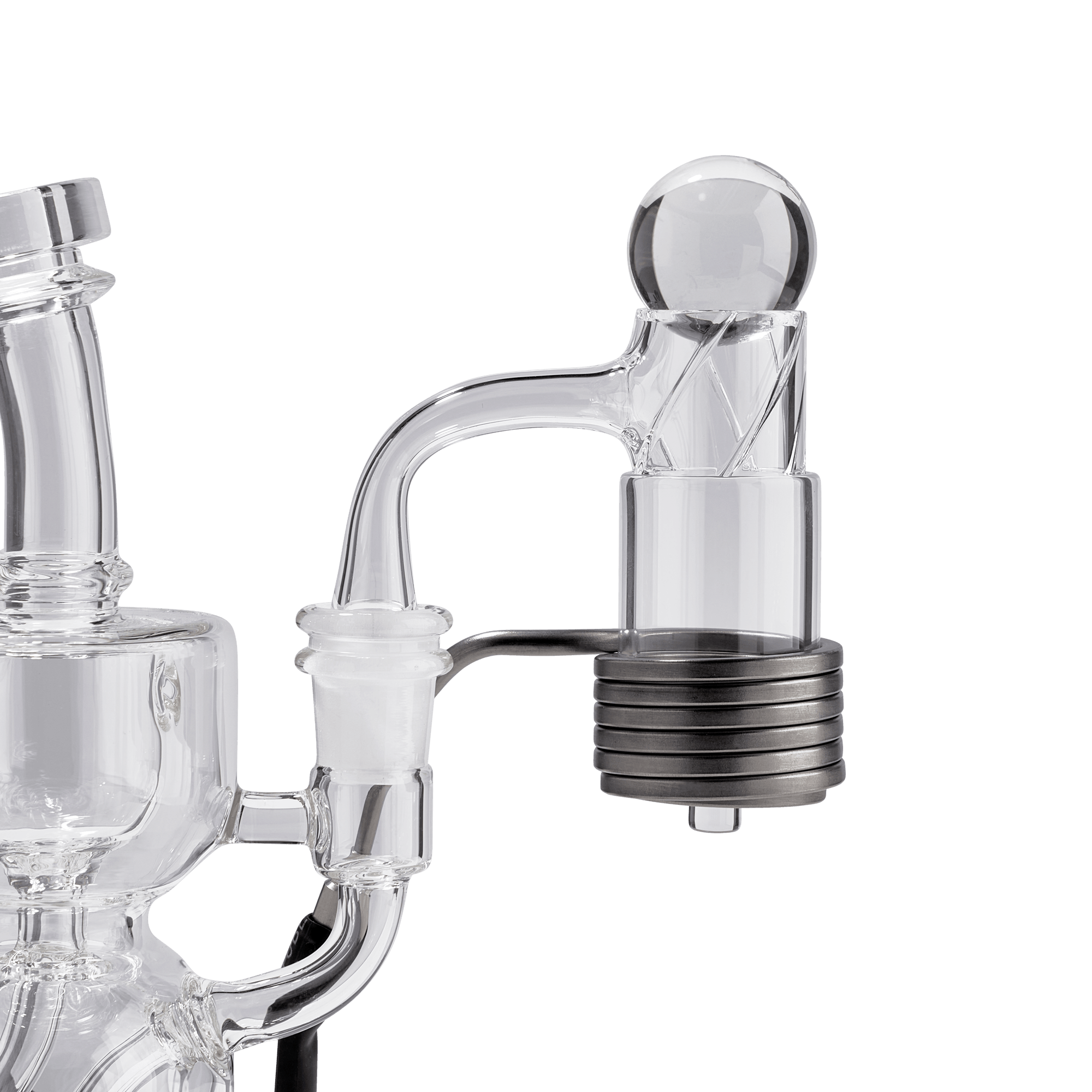 Get the most out of your concentrates with the High Five Quartz Cyclone E-Banger. The functionality of the Cyclone E-Banger is unmatched, featuring deep airway slits on the inside top of the dish for consistent airflow during vaporization.